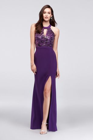Sequined Jersey Open Back Halter Gown