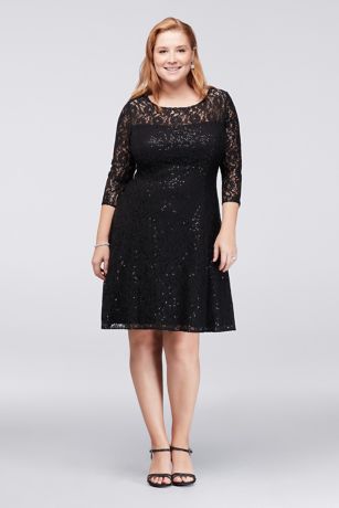 This fun fit-and-flare party dress is made even more celebratory by sequined lace and an illusion neckline.