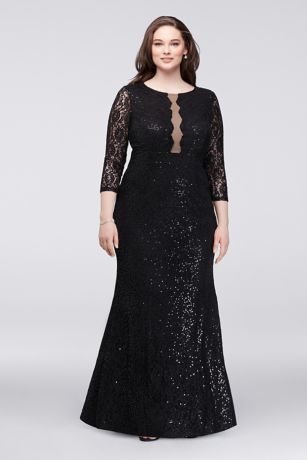 Sequined Lace Plus Size Gown with Illusion Bodice