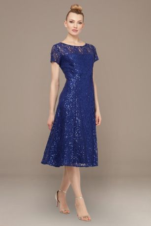 This Tea-Length Sequin Lace Cocktail Dress with Cap Sleeves is the perfect party piece. Boasting a figure-flattering fit, it will have you sparkling and shimmering all night long.