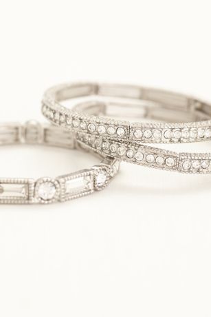 - Bracelets come in set of three featuring sparkling multi-shaped crystals.