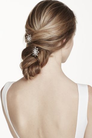 - Set of two hairpins featuring a stunning starburst of sparkling crystal beads.