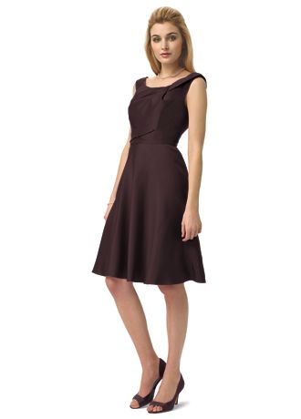 This short shantung dress is flirty and has a retro vibe. The pleating detail at the neckline adds style to the simple silhouette.