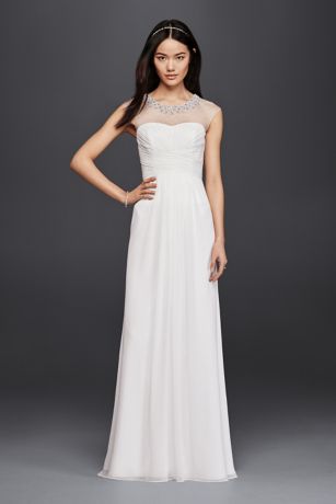 Sheath Wedding Dress with Beaded Illusion Neckline