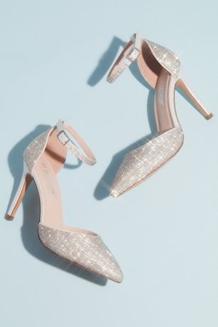 Shimmering with dozens of micro crystals and finished with an ankle strap, this pair of pointy toe shoes will add subtle sparkle to your dress.