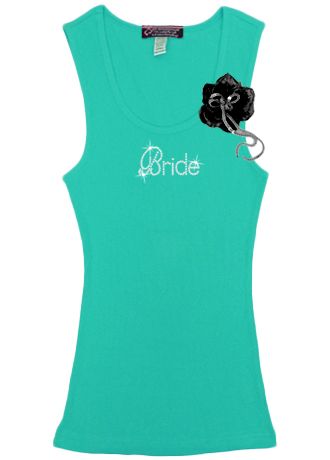 Gorgeous rhinestone embellished Bride tank top with a sequined flower in your choice of flower color.  Feminine and flirty and fun for the bride to wear!