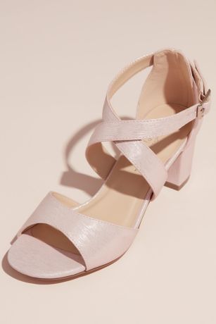 Fancy up your footsteps in this shimmery, cross-strap pair. Their block heel makes them sturdy and stylish for a night of dancing.