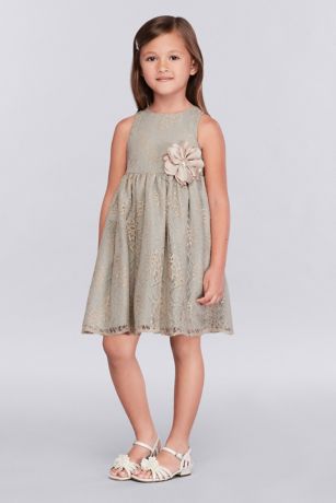 This fairy tale dress is designed in exquisite floral lace with a subtly contrasting lining. The sleeveless bodice with lovely floral appliques flows into a full skirt that's made for twirling.
