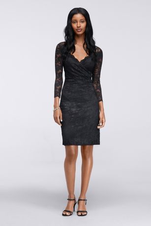 Beautiful floral lace with a hint of stretch is the foundation for this gorgeous dress, which is finished with a elegant scalloped neckline and long sheer lace sleeves.