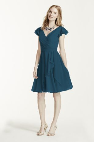 Short Chiffon Dress with Crinkle Flutter Sleeve