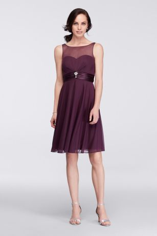 This short mesh dress will quickly become your go-to party staple thanks to the flattering silhouette, illusion sweetheart neckline, and vintage-inspired pendant at the waist.