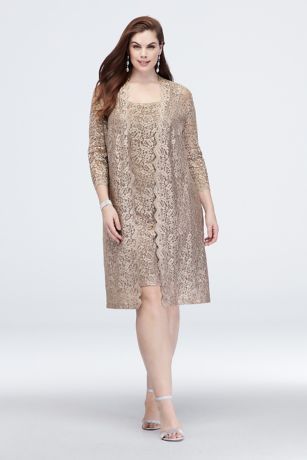 Short Glitter Lace Tank Plus Size Dress and Jacket
