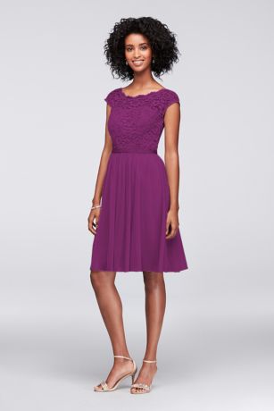 • Features cap sleeve illusion lace boatneck bodice, mesh skirt and grosgrain ribbon at waist.