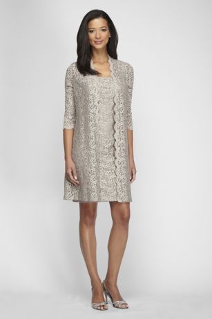 This short lace sheath dress features a matching elongated jacket for those times when you prefer a bit more coverage.