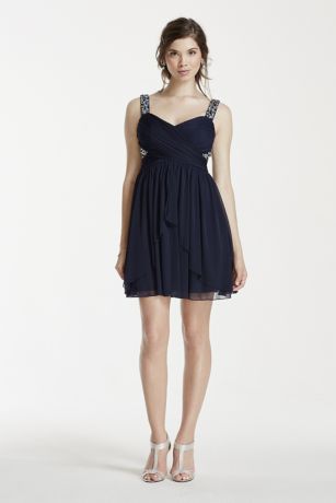 Short Mesh Dress with Embellished Tank Straps
