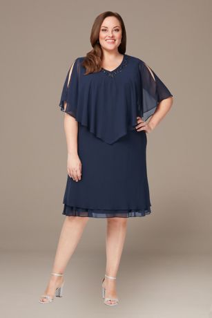 This short A-line dress crafted with breezy chiffon is made to move with your every step. Stun as the mother of the bride or groom or as a guest to your next event in details like a beaded capelet and double tiered hemline. Designed exclusively for plus size silhouettes.