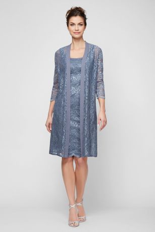 Short Scoopneck Lace Tank Dress with Sheer Jacket