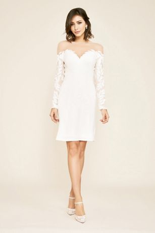 Short Sequin Lace Motif Long Sleeve Wedding Dress