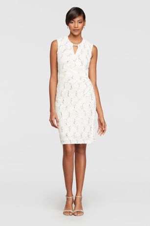 Short Sequined Lace Dress with Keyhole Neckline
