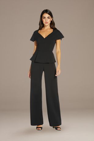 Structured in all the right places, this crepe jumpsuit features cap sleeves and a flattering peplum detail. Add a pop of color with a bold shoe or statement jewelry.