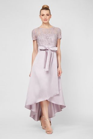 Short Sleeve Lace and Mikado High-Low Gown
