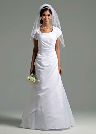 Short Sleeve Satin A-line Gown