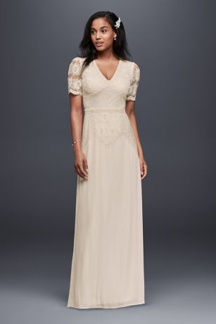 Short Sleeve V-Neck Sheath Dress with Mixed Lace