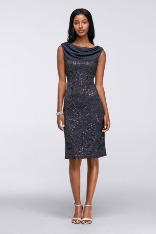 Short Sleeveless Stretch Sequin Lace Cowl Dress