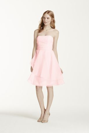 - Strapless sheer matte organza dress features flattering ruching on the bodice.