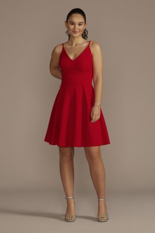 Short Stretch Crepe Spaghetti Strap A-Line Dress