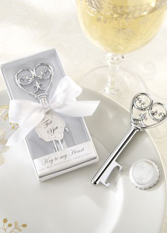 Open the door to a charming romantic wedding with the turn of this Victorian-inspired key bottle opener! The design beautifully disguises its use as a bottle opener and your guests will recall your romance every time they pop a top!