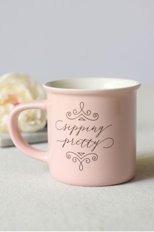 This stylish mug features a scrolling design and the phrase "sipping pretty."