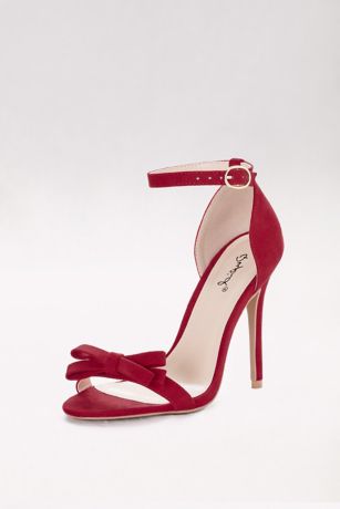 A chic finish for midi dresses or cropped trousers, these faux-suede skinny-strap stilettos are finished with a loopy bow.