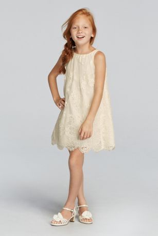 This darling softly textured lace sleeveless dress will be the perfect match for your flower girl!
