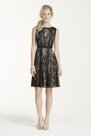Sleeveless Contoured Lace Fit and Flare Dress