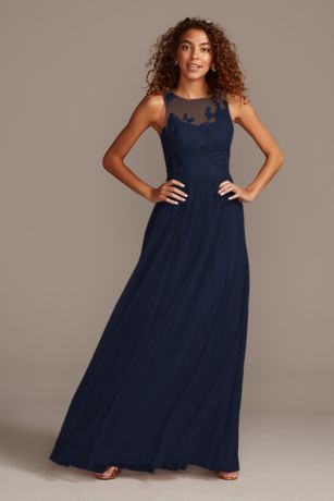 Sleeveless Embroidered Soft Net Bridesmaid Dress