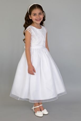 Sleeveless Faux Bolero Tea-Length Communion Dress