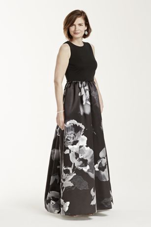 Any Mother of the Bride or Groom will look elegant in this gorgeous floral print ball gown!