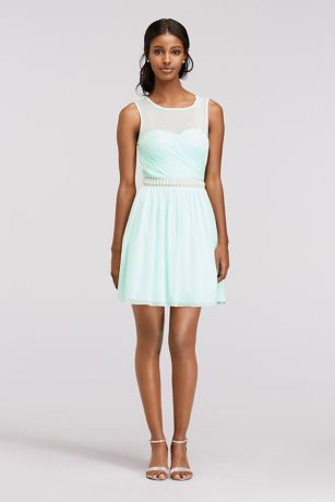 - Sleeveless illusion neckline and pearl beaded waist will have you looking classy and chic!