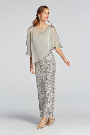 Stylish, classy and modern! This elegant all over sequin lace dress with caplet accent is sure to shine at any special occasion!
