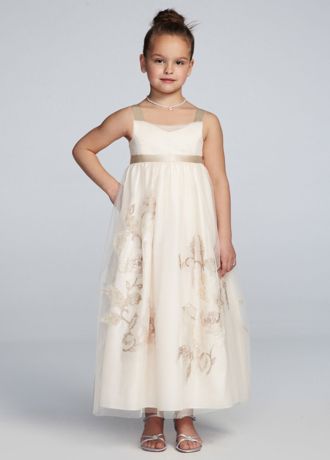 For a beautiful and unique flower girl look, this gorgeous tulle long ball gown is perfect!