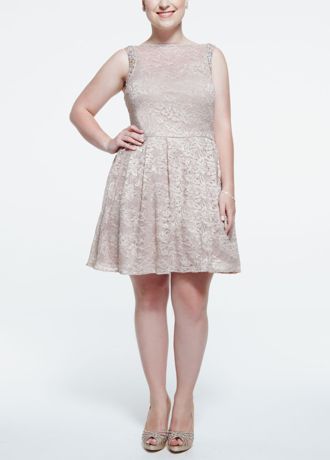 - Sleeveless all over glitter lace dress features illusion neckline and key hole back detail.