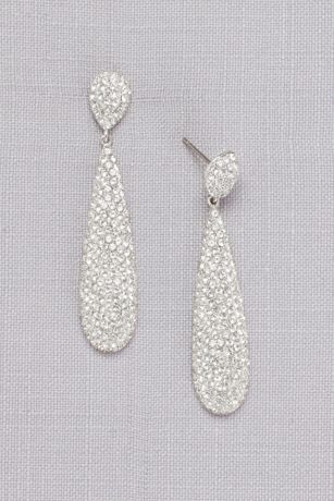 Simple, dramatic, and packed with sparkle, these pave crystal teardrop earrings will look lovely with both wedding gowns and party dresses.