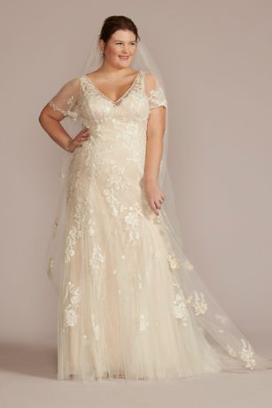 Soft Tulle Flutter Sleeve Mermaid Wedding Gown