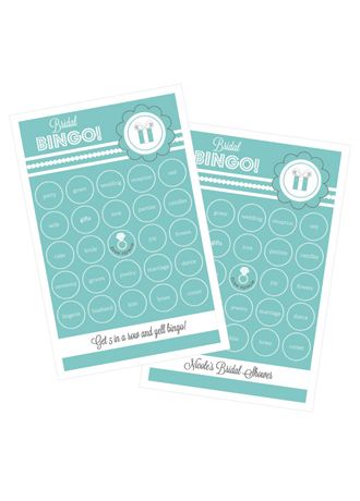 Who doesn't love a game of BINGO? Guests will enjoy playing this fun interactive bridal shower party game. These Something Blue Theme Party Bingo Cards are pre printed with common something blue related words; each card is unique - no 2 are alike! A word list is also provided. Just tear out the cards, drop them in a bowl and draw at random. First person to get 5 in a row yells BINGO! Middle square is a free space on all cards. Guests can use a pen to cross off called bingo words OR you can provide them with creative bingo markers like life savers or chocolate kisses.