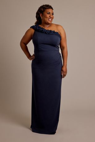 Delicate florals bloom from the one-shoulder neckline of this stunning crepe sheath dress. Mom will love the modern take on the silhouette, designed to show off her best assets.