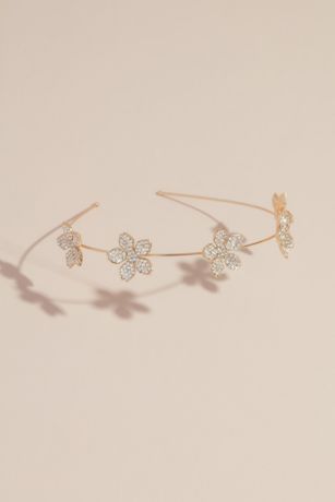 A minimalist-pretty accent for your lovely locks, featuring pave crystal blooms on a slim headband.