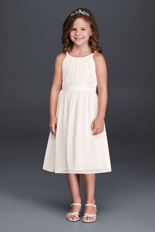 Simply beautiful, this chiffon tea length flower girl dress is a picture of perfection!