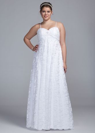 Spaghetti Strap Empire Waist All Over Lace Gown