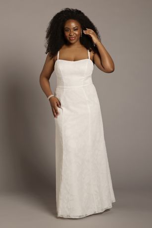 Featuring a timeless silhouette, delicate straps, and textured floral jacquard fabric, this A-line wedding dress exudes effortless elegance.